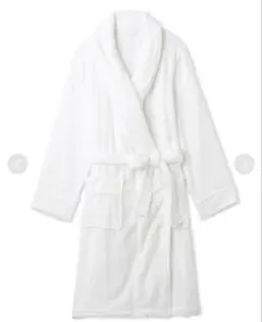 タオル生地のリラックスフィットバスローブ、ポケット付きで便利。