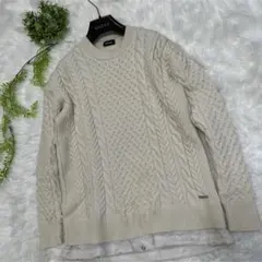 DIESELのホワイトケーブルニットセーター、ロゴプレート付き。