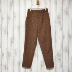 GU ジーユー 起毛 タックテーパードパンツ スラックス チェック L ブラウン