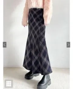 GRL チェック柄 フレアスカート ウエストゴム ロング丈 M
