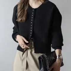 ボタンをすべて留めてプルオーバーニットとして、ボタンを開けてカーディガンとして、着回し力も抜群のアイテムです。