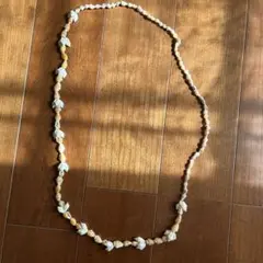 アイボリーの貝殻モチーフネックレス、光沢仕上げで華やかさを演出。