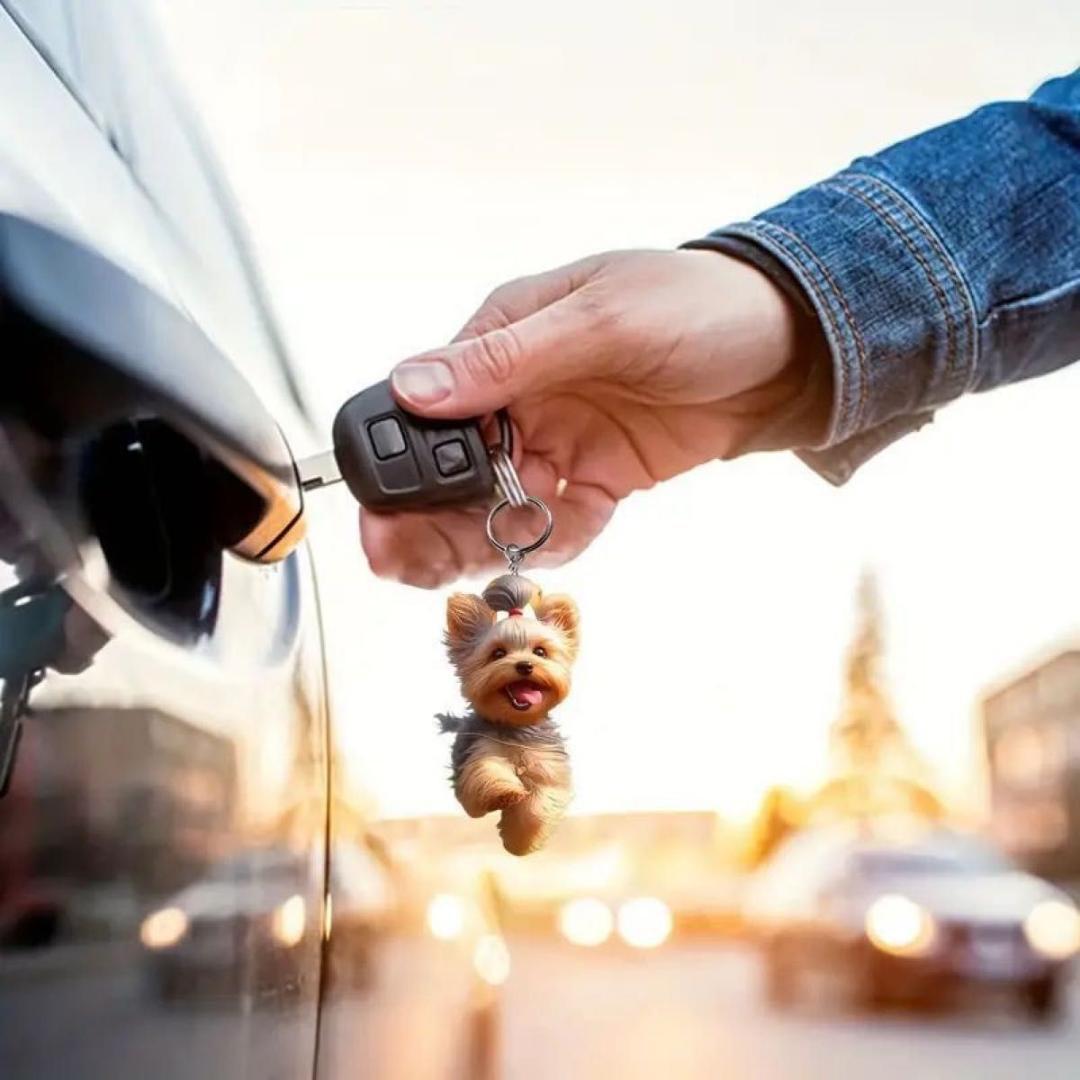ベロを出して走る姿が可愛らしいヨークシャテリアのキーホルダー