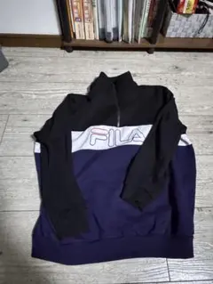 ジップアップデザインのFILAトレーナー、刺繍ロゴ付きでカジュアルに最適。