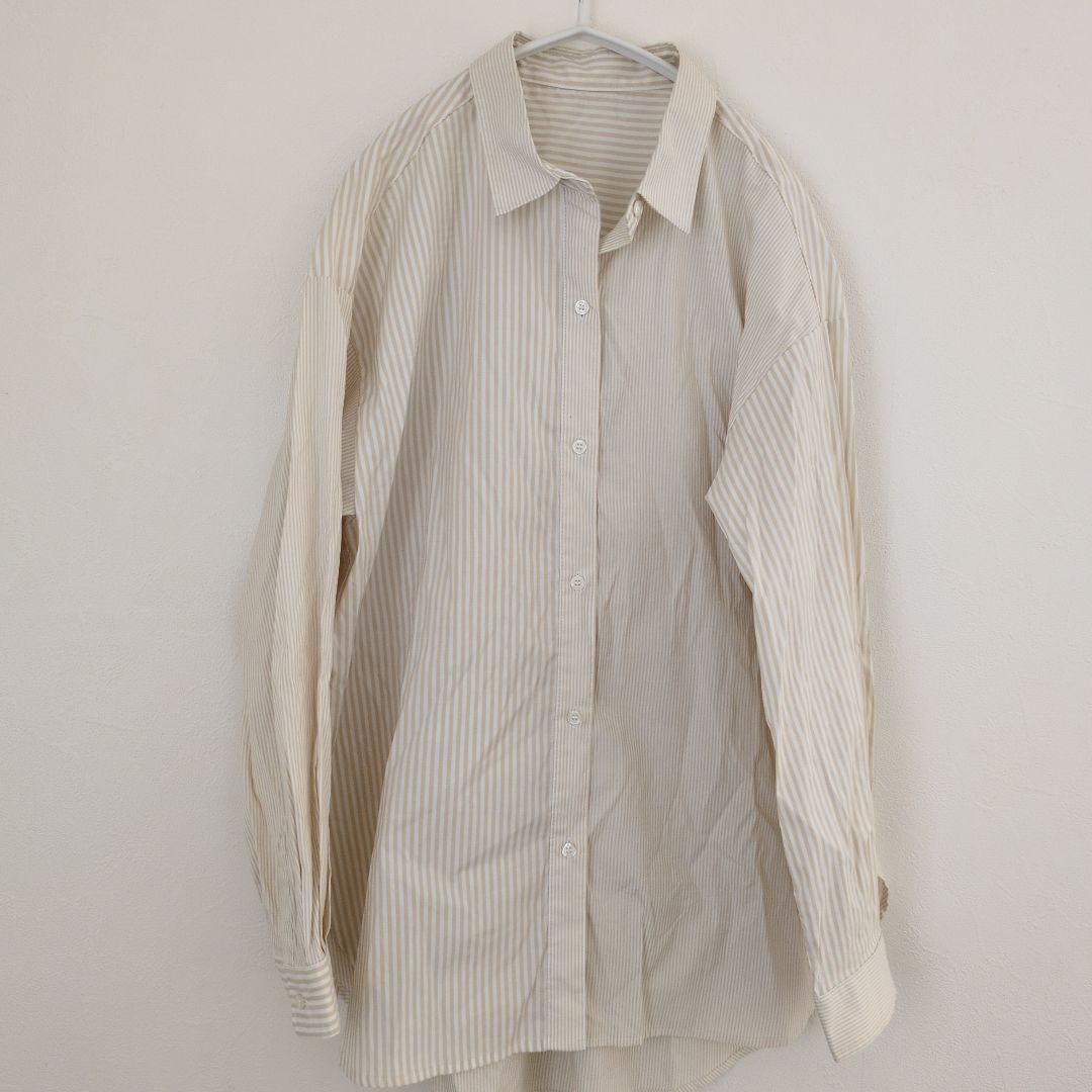 グローバルワーク ストライプ長袖シャツ M ベージュ