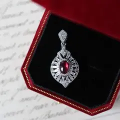 天然石☆ガーネット☆ ハート型ストーン リボン型ネックレス