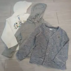 スヌーピーのプリントが特徴のトレーナーとハート装飾のヒラヒラ付きトップスのセット。