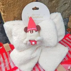- デザイン: ミッキーのぬいぐるみ付きの白いフリース素材のスカーフ