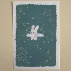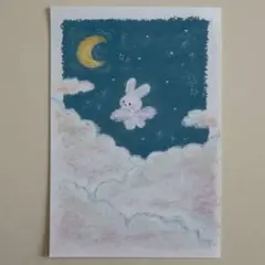 ハガキサイズ パステル画 「プールとうさぎ」 原画