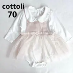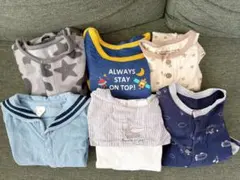 クマと気球の刺繍が施されたロンパースとオーバーオールのセット。