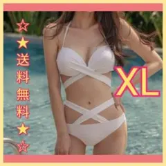 【XL】ビキニ ハイウエスト クロスラップ タイト バックリボン タンキニ