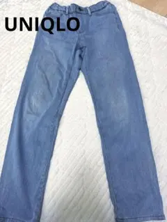 ウエストゴム仕様のダークブルーの130サイズの長ズボン。
