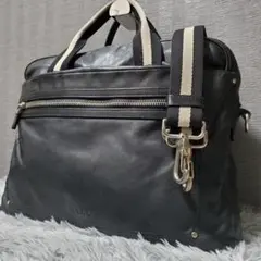 値下げしました!Bally 黒 レザー ビジネスバッグ ストライプデザイン