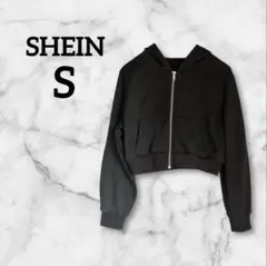 SHEIN ファー付きジップパーカー ブラック 黒 M