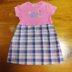 ミキハウスのロゴとお花の刺繍が入ったピンクのワンピース!