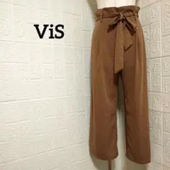 VIS ワイドパンツ 白 ウエストリボン M カジュアル きれいめ おでかけ