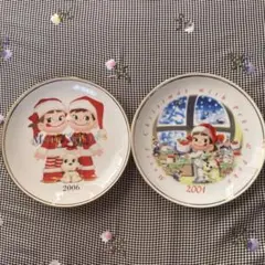 サンタの衣装を着たキャラクターが描かれたクリスマスプレート、2016年製。2013年製