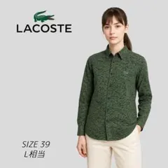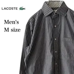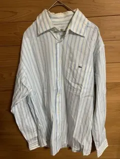 紫のチェック柄シャツ、ワニの刺繍付き、ボタンダウンデザイン。
