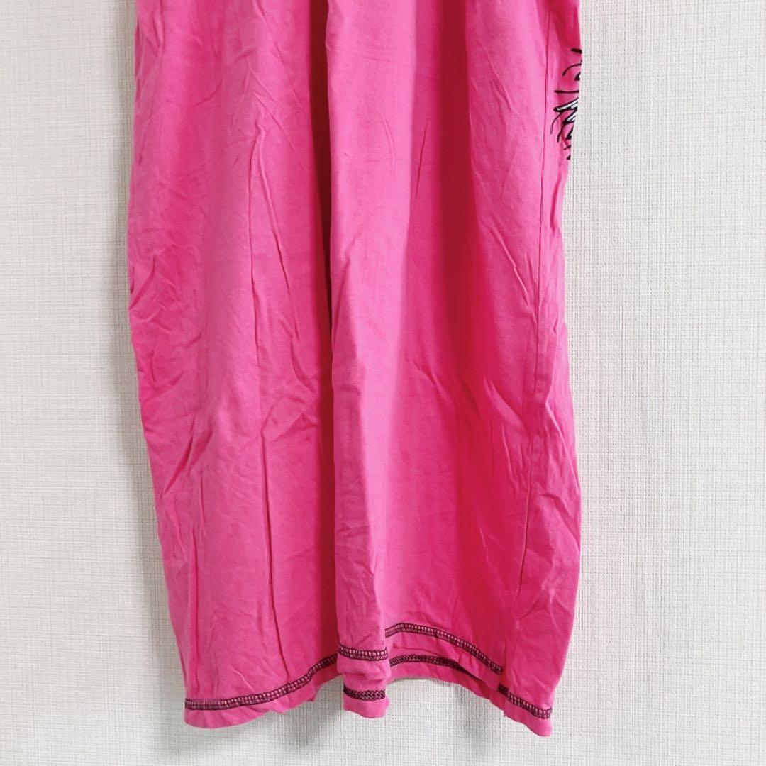 ピンク色の100%コットン製、猫のイラストが特徴のルームウェア。