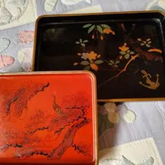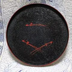 黒地に金と青の花が描かれた美しい漆器の盆。