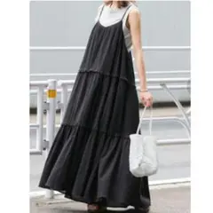 シンプルでスタイリッシュなグレーのキャミワンピース、重ね着に最適です。