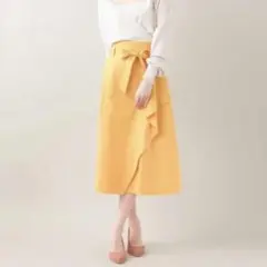 軽やかなシフォン素材の紫色ベース、幾何学模様ロングスカート。秋に似合う色味です。