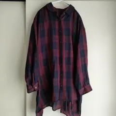 黒と白のギンガムチェックの長袖シャツ、Vネックデザインでギャザー入り。Sサイズですが、ゆったり、袖口1/3ぐらいゴムが入ってます。