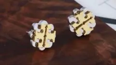 トリーバーチ ピアス Split Circle Enamel 88333 黒×金