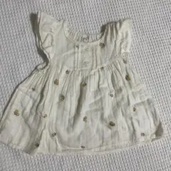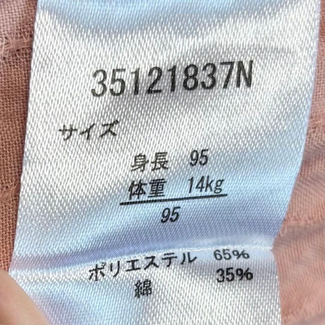 柔らかいピンク色のフリル付きトップス、95cmサイズ、通気性の良い素材。