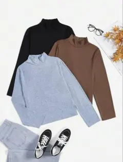 ブラックタートルネック長袖トップス