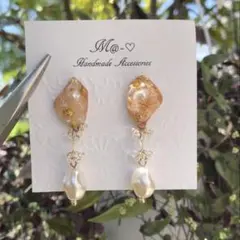#ハンドメイド #ピアス #イヤリング #大ぶり #ゴールド #秋 #樹脂 #チタン #プチプラ #mikuピアス