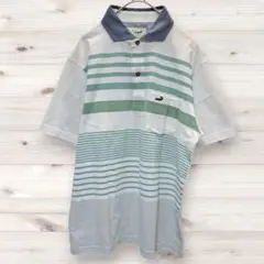 クロコダイル ポロシャツ M ボーダー グレー 左胸ポケット付き カジュアル
