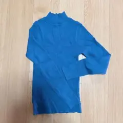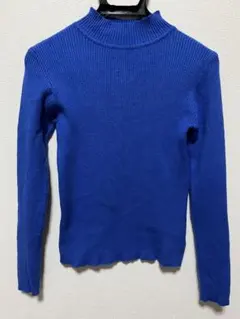 リブ編みのタートルネックセーター、鮮やかな青色でスタイリッシュ。