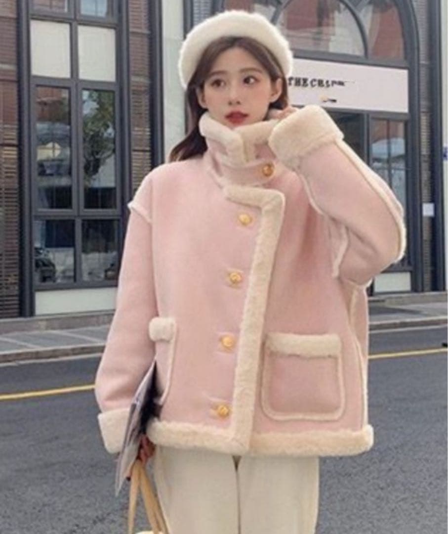 ムートンジャケットのようなデザインで暖かいジャケットです。