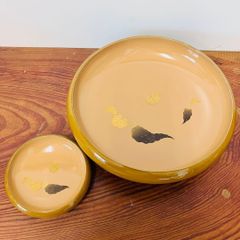 古い輪島塗のお椀です。落ち着いた色味の時代朱漆に優美な春七草蒔絵の映えるお品。小ぶりでかわいらしいサイズ感です。画像の通り小傷や塗直し箇所あります。