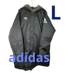 フード付きのロングベンチコート、サイドに3本ラインデザイン。