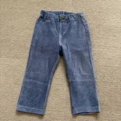 ダークデニムの90サイズ、裾にレース付きのカジュアルパンツ。