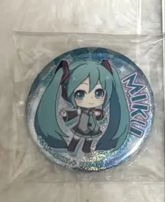 初音ミクや鏡音リンなどのキャラクターがデザインされた缶バッジやアクリルスタンドのセット。