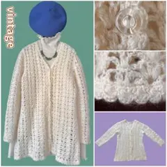 昭和レトロなヴィンテージ古着、手編みのニットカーディガンです♪