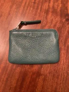 ライトグリーンのレザー製ジッパーコインケース。