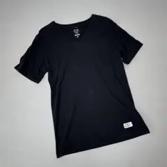 シンプルな黒のTシャツに大きなロゴプリント。