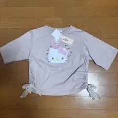 ハローキティの40周年を祝うピンクのTシャツ、可愛いデザインが特徴。