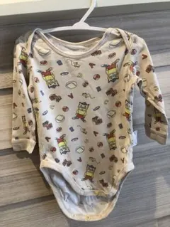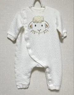 クマの顔刺繍がかわいいベージュのロンパースです。