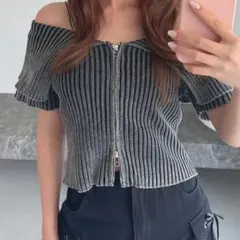 GRL 今田美桜タートルネックメロウシアートップス ブラック グレージュ