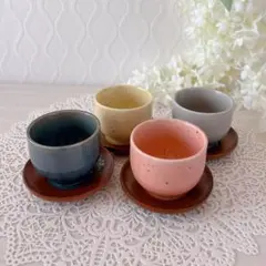 新品 陶器 湯呑み 茶碗 湯呑み茶碗 茶托付き 大きめ湯呑み