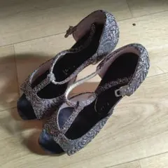 社交ダンス用 ゴールド ストラップ付きヒールシューズ 23.5