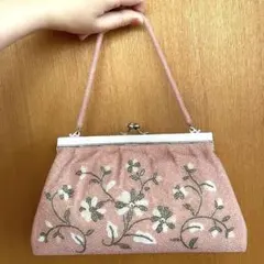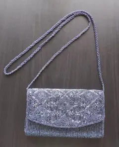 ビーズとスパンコールのクリーム色クラッチバッグ