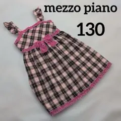 美品メゾピアノ 【130】ジャンバースカート 赤色 フレア ロゴ入り レース