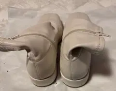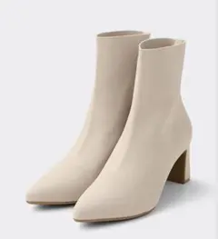 クリーム色のオープントゥブーツ、ジッパー付きでスタイリッシュ。