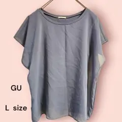 GU ジーユー ドレープTブラウス S 半袖 ネイビー 美品 オフィス